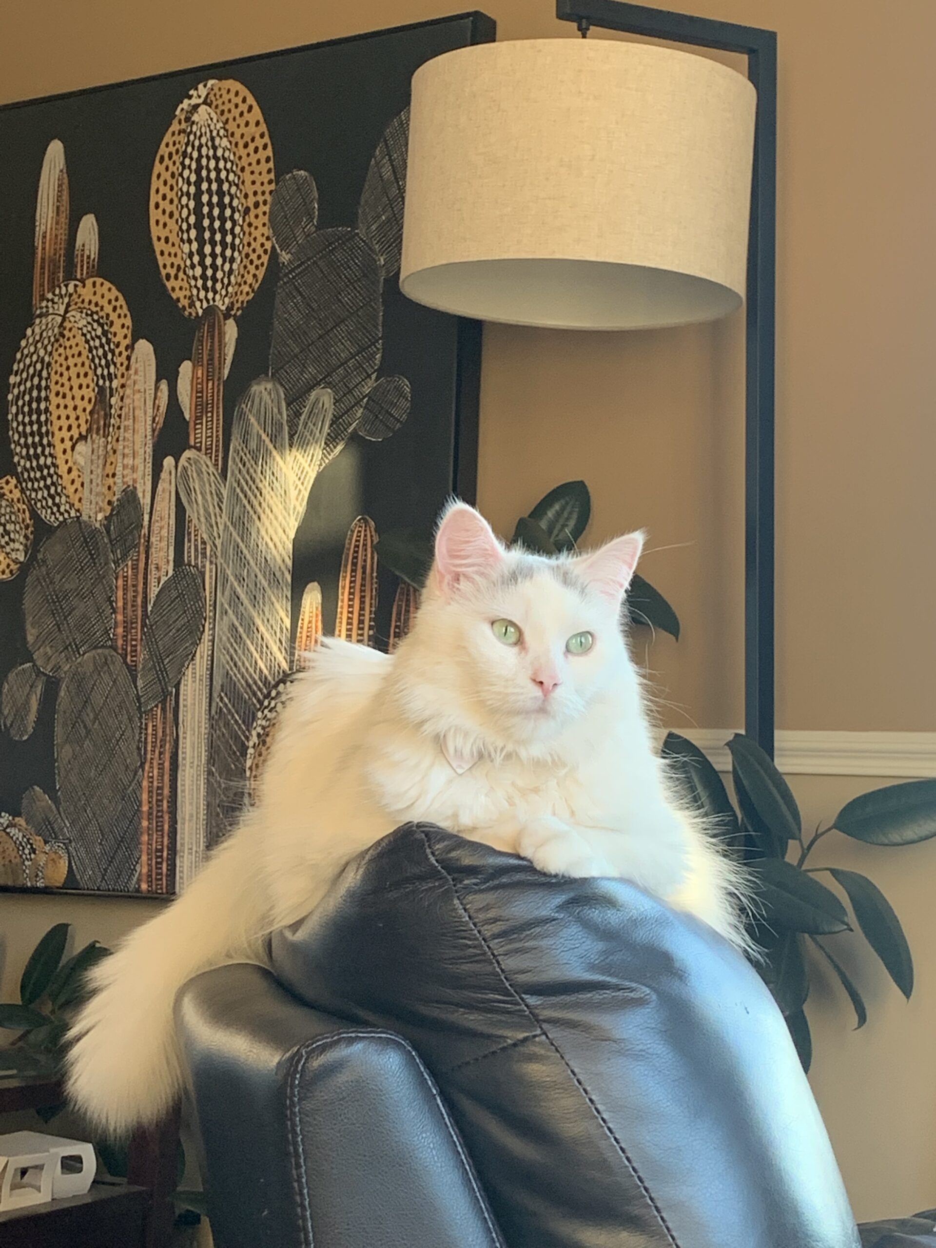 Ton absence crée un grand vide dans la maison. Tu nous manques tant. Ton ronronnement distinctif (petit moteur), ton long pelage blanc et « Fluffy », tes bisous de chat et ta beauté sans pareille vont rester gravés dans ma mémoire.